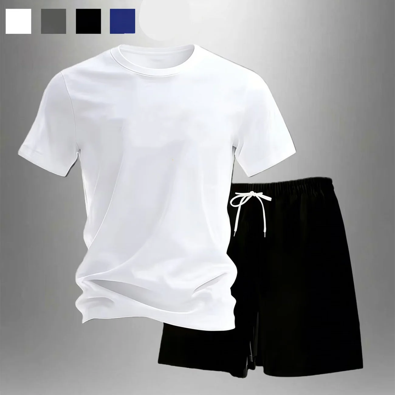 Ensembles de sport décontractés 2 pièces 2026 – Couleurs unies, T-shirt respirant en maille à manches courtes + short – Ensembles de jogging et de course pour homme – Été