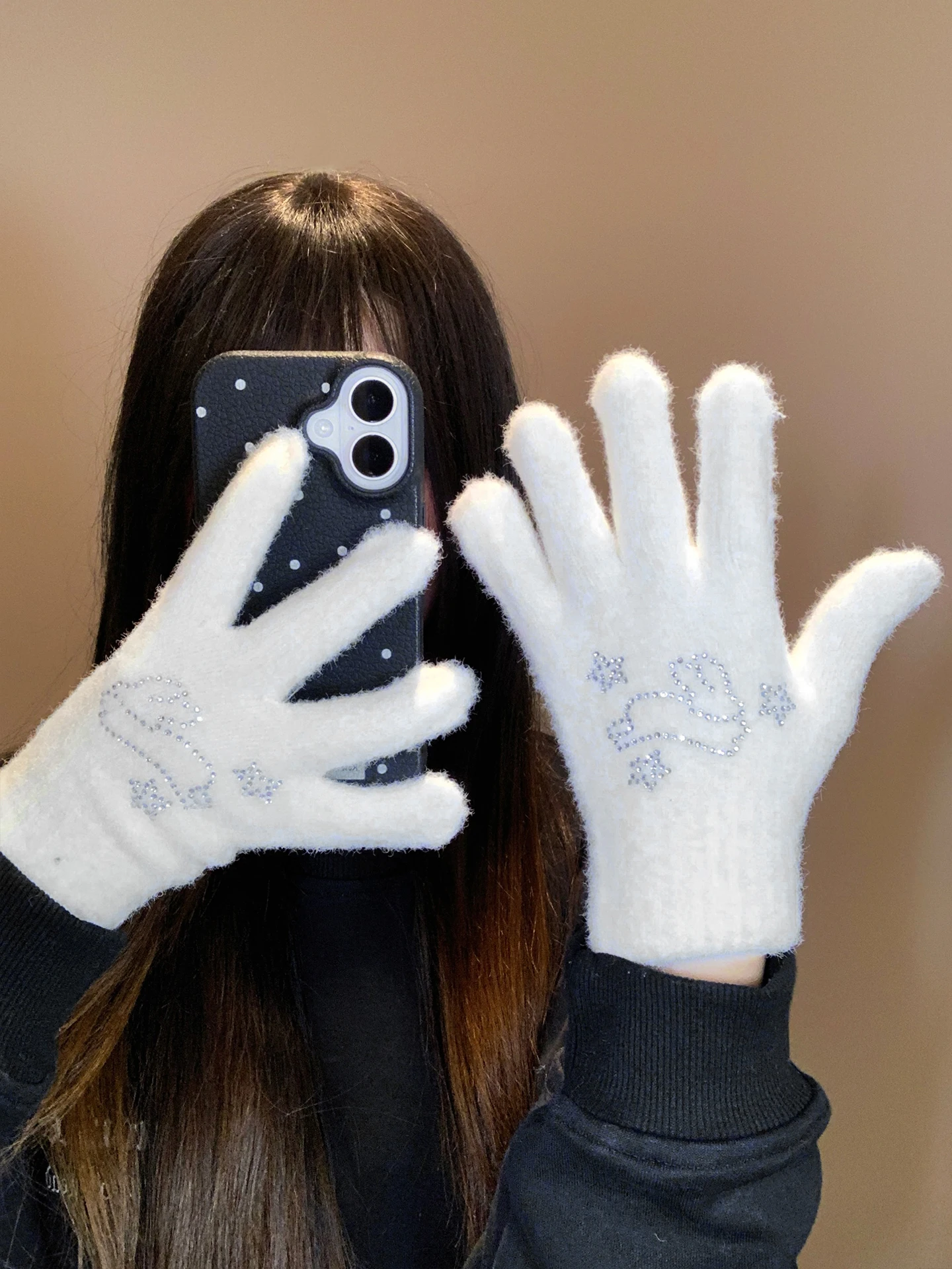 Thiened tricoté Plu gants pour femmes hiver chaud équitation résistant au froid cinq doigts gant mignon étoile conception Polyester Fiber