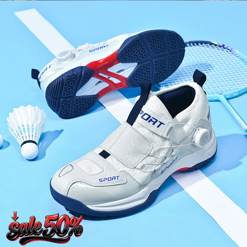 Chaussures de badminton à double boucle rotative (hommes et femmes) MD + semelle extérieure antidérapante en caoutchouc compétition et entraînement en intérieur et en extérieur