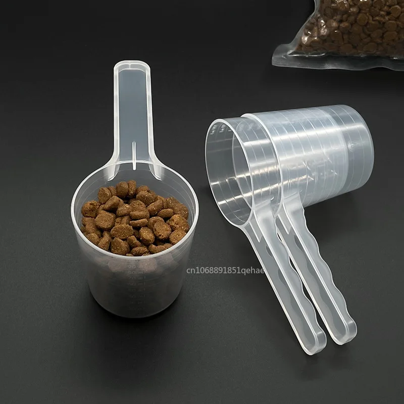 Cuillère à mesurer transparente pour animaux de compagnie, avec échelle, pelle d'alimentation en plastique pour chien et chat, fournitures de table pour animaux de compagnie, 50g 100ml, 1 pièce