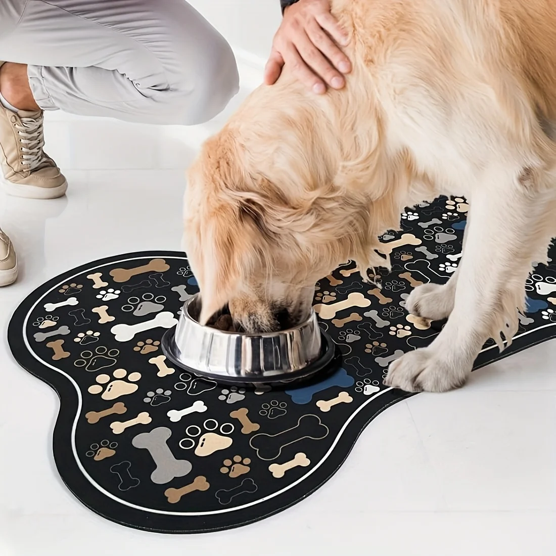 Tapis d'alimentation pour chien, antidérapant, à séchage rapide, imprimé patte géométrique en arête de poisson, coussin de bol d'eau et de nourriture pour animaux de compagnie Durable pour chiens de petite à moyenne taille
