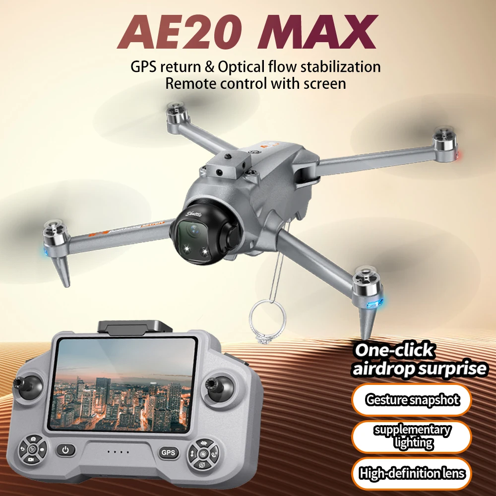 Drone GPS AE20 2026 Professionnel avec Caméra 4K HD, WIFI 5G, Grand Écran, Télécommande, Avion Pliable, Vol de 22 Minutes, Quadricoptère RC Sans Balais