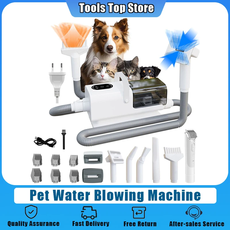 Ensemble de soins pour chiens et chats pour animaux de compagnie soufflant ; Machine tout-en-un à sucer, rasoir électrique pour animaux de compagnie, souffleur d'eau spécifique pour chat et chien, prise en charge de l'air chaud
