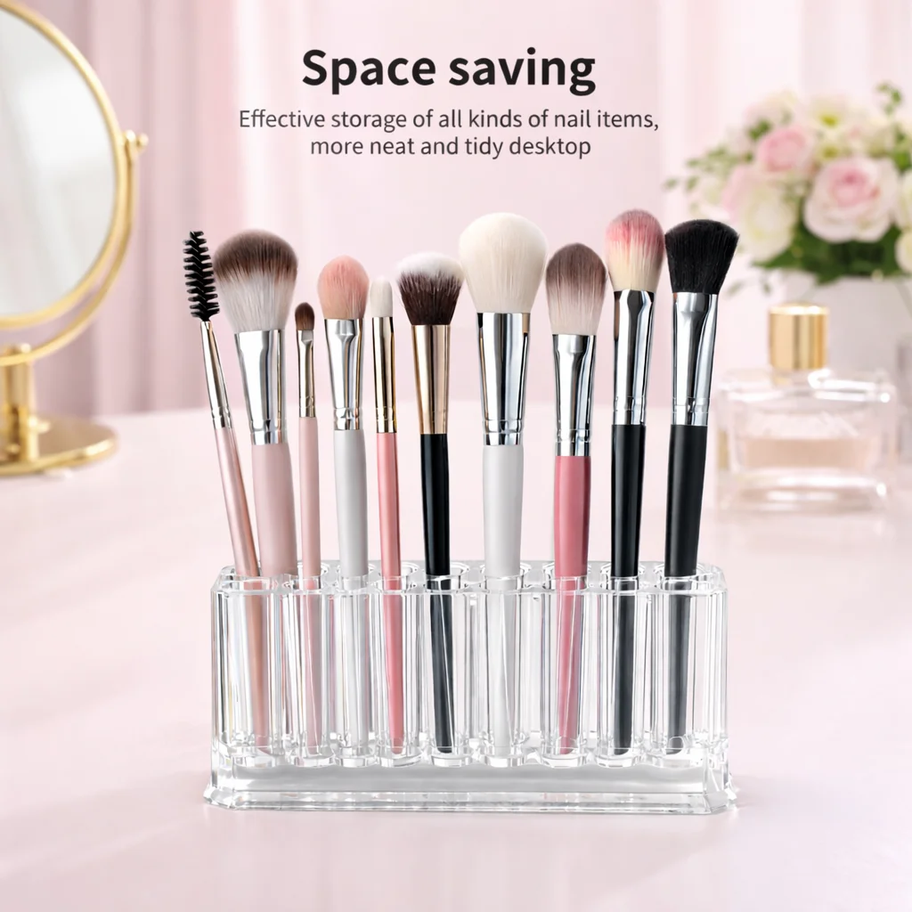 Support de rangement pour pinceaux de maquillage en acrylique transparent, organisateur de cosmétiques, présentoir de bureau pour outils de beauté, support peu encombrant pour pinceaux à ongles