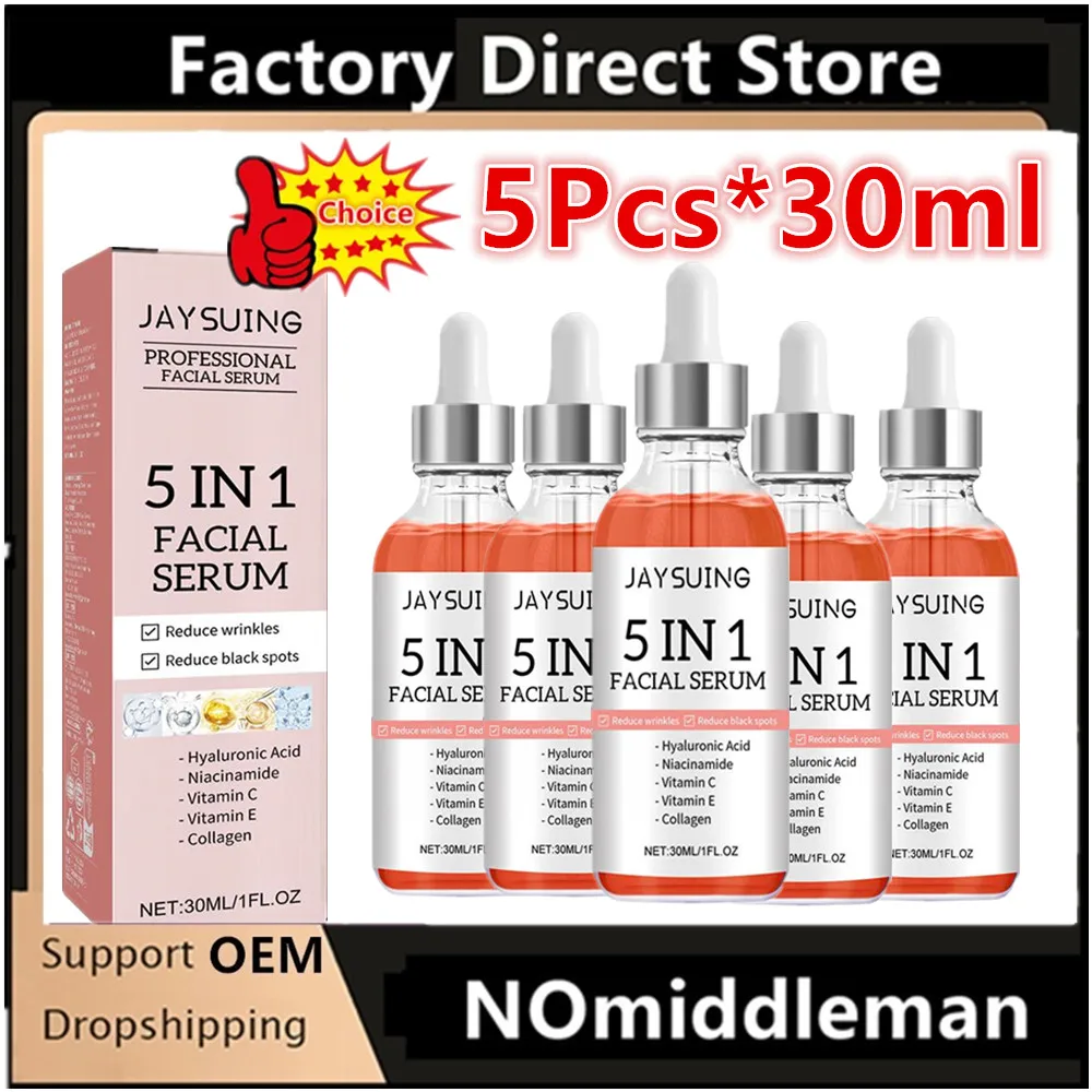 Sérum pour le visage raffermissant 5 en 1, estompe les ridules, hydratant, éclaircissant, vitamine C, acide hyaluronique, rétrécit les Pores, soins pour la peau