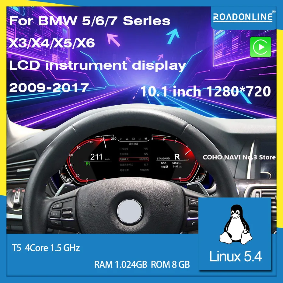 Tableau de bord numérique LCD Roadonline. Compteur de vitesse adapté pour BMW série 5/6/7 F07/F10/F18/F12/F01/F02 X3/X4/X5/X6/F25/F26