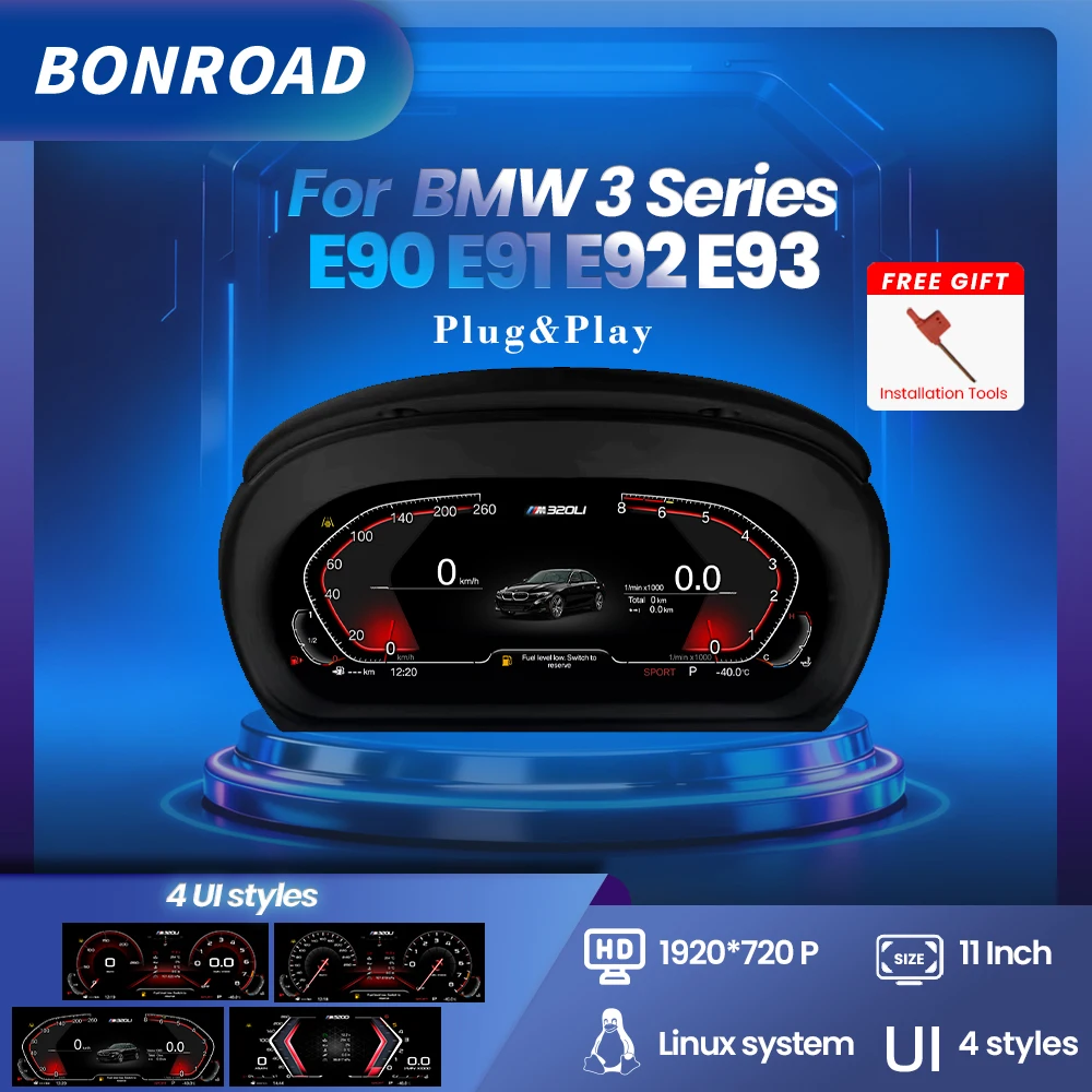 BONROAD tableau de bord compteur de vitesse panneau d'affichage système Linux 12.3 ''1920*720P pour BMW E90 E91 E92 voiture LCD groupe d'instruments numériques