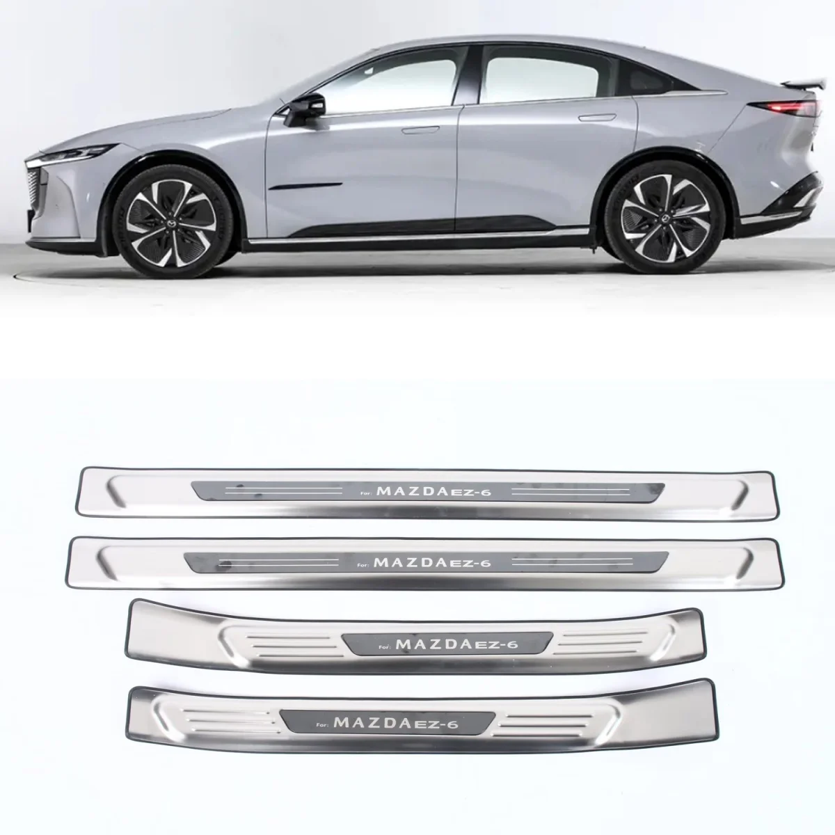 Plaque de seuil de porte en acier inoxydable, style de voiture pour Mazda EZ-6, 4 pièces, couvercle de protection des pédales automobiles 2023 2024