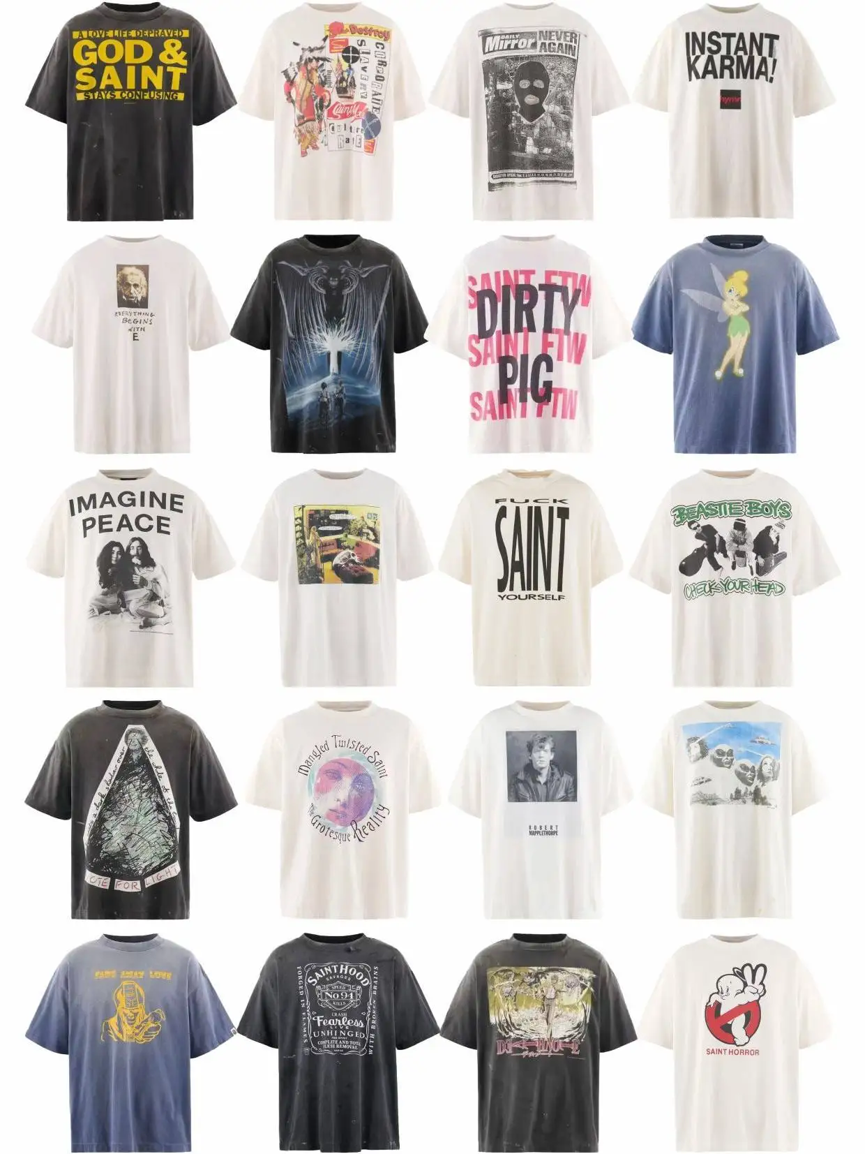 T-shirt unisexe Saint MXXXXXX 26SS vintage délavé et vieilli, coupe ample et oversize, en pur coton, manches courtes, style streetwear