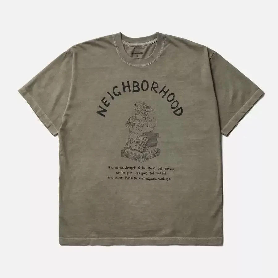 T-shirt à manches courtes en coton batik délavé avec imprimé brûleur d'encens classique NBHD 26SS