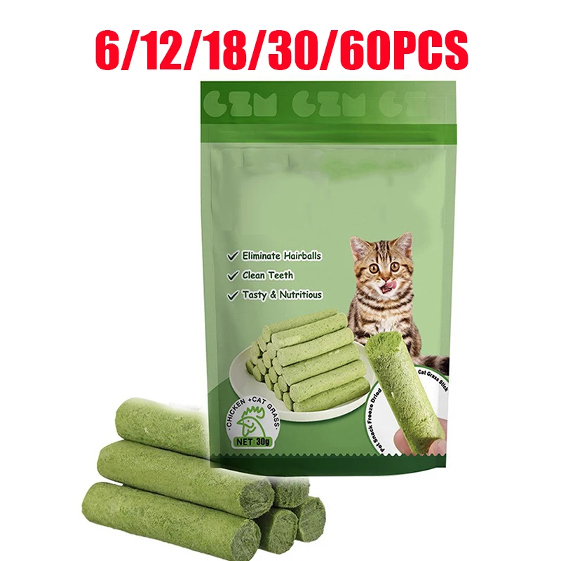 6-60 pièces/lot Bâtonnets à mâcher en herbe pour chat, pour le nettoyage des dents, la prévention des boules de poils et la stimulation dentaire