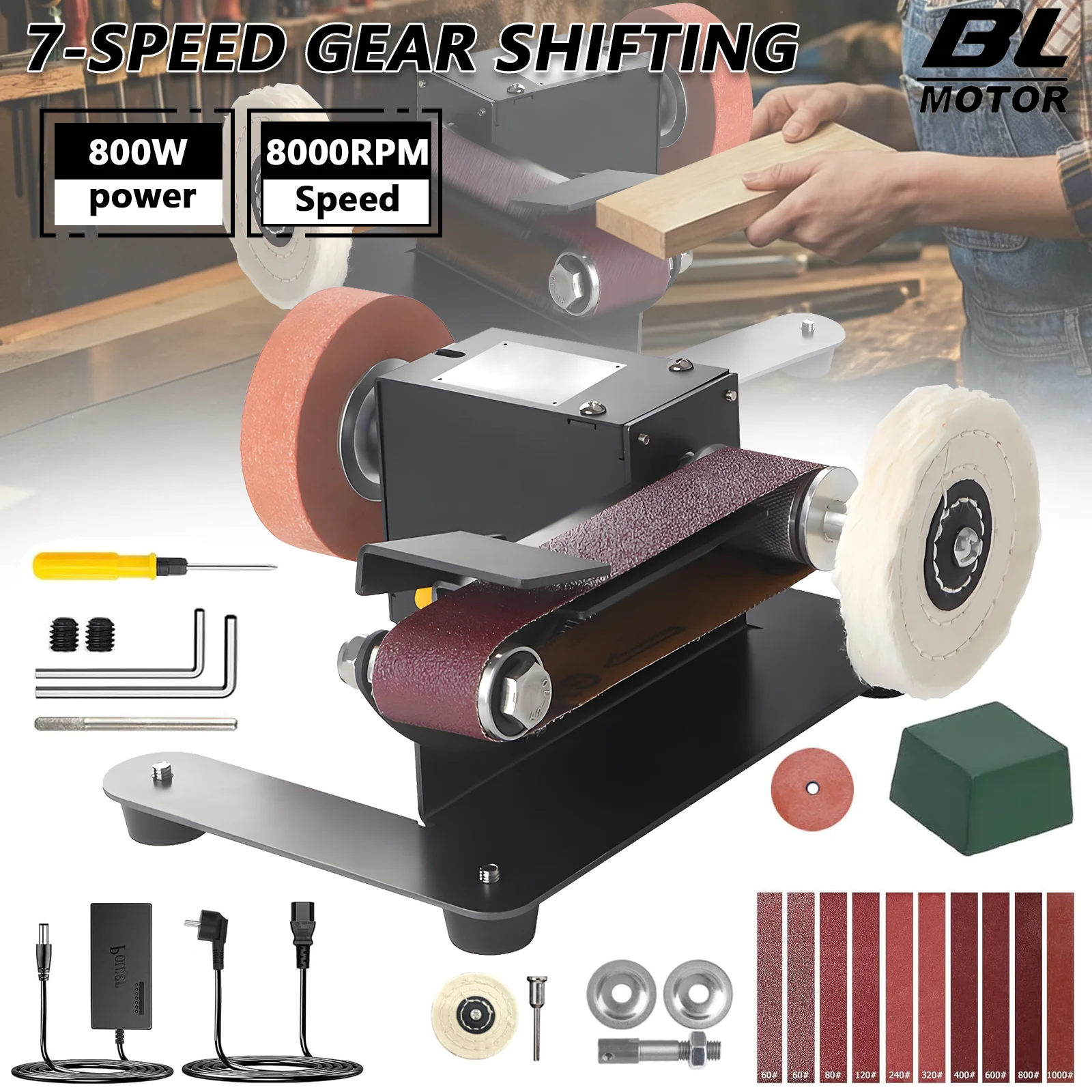 Mini ponceuse à bande électrique 800W, contrôle 7 vitesses, machine de polissage et de meulage DIY, affûteur de bords, outil électrique