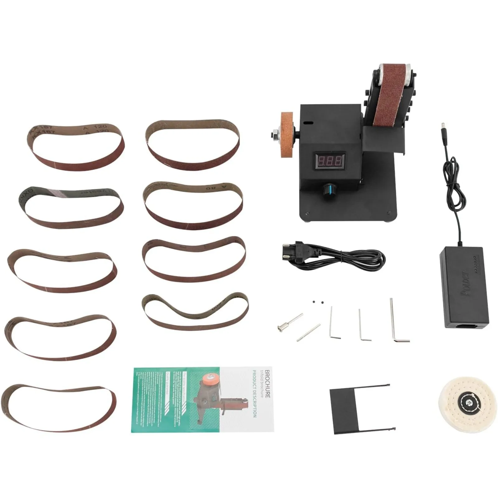 NOUVEAU Mini ponceuse à bande électrique, 350W, 0-90 ° Affûteur avec réglage, polissage et ponçage, avec 10 bandes