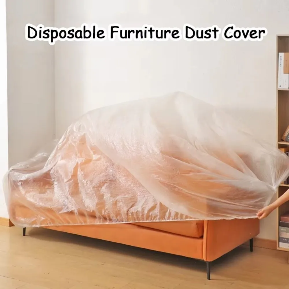 Couvercles anti-poussière jetables transparents, élastiques et imperméables pour meubles, cordon de serrage, Film anti-poussière en plastique entièrement enveloppé