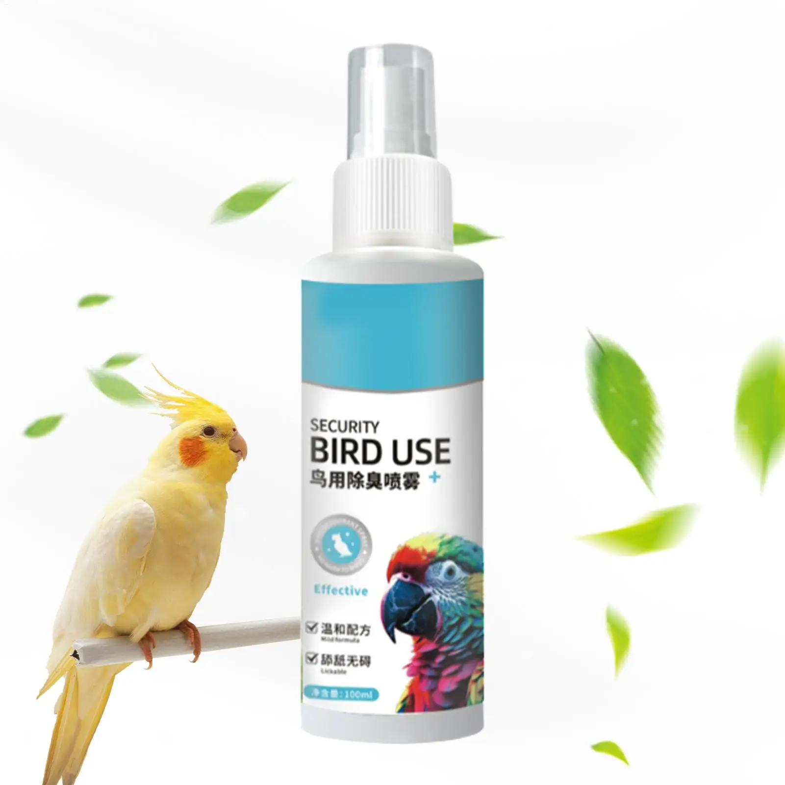 Dissolvant de merde d'oiseaux 100ml, Solution de nettoyage sûre, désodorisant, Spray nettoyant pour Cage à oiseaux, désodorisant pour jouets d'aviaire, bain d'oiseaux