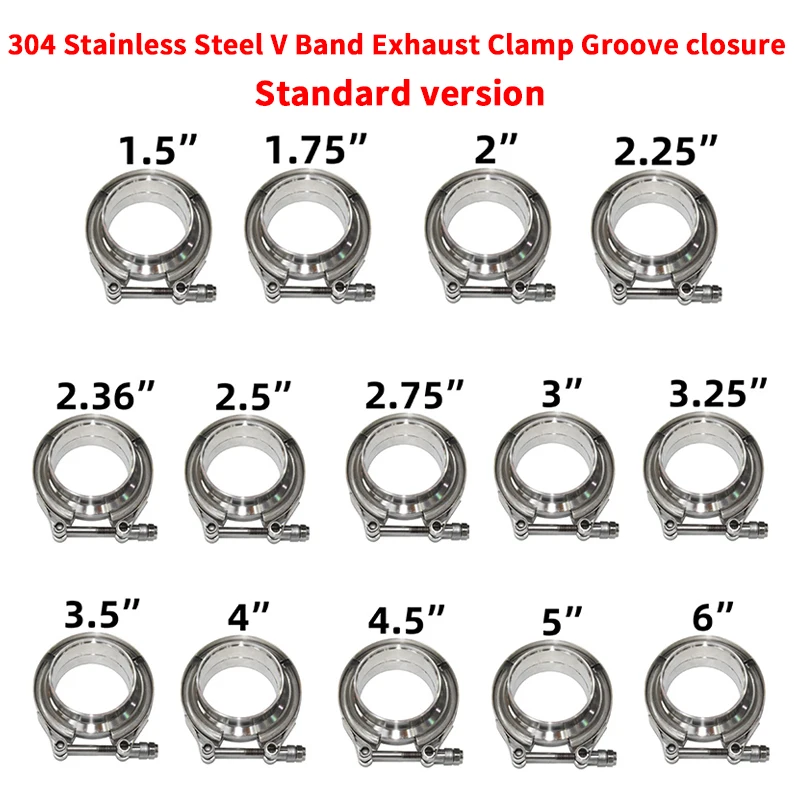 Pince à dégagement rapide en acier inoxydable pour voiture, bande en V, bande en V normale, 2 po, 2.25 po, 2.5 po, 2.75 po, 3 po, 3.5 po, 3.75 po, 4 po
