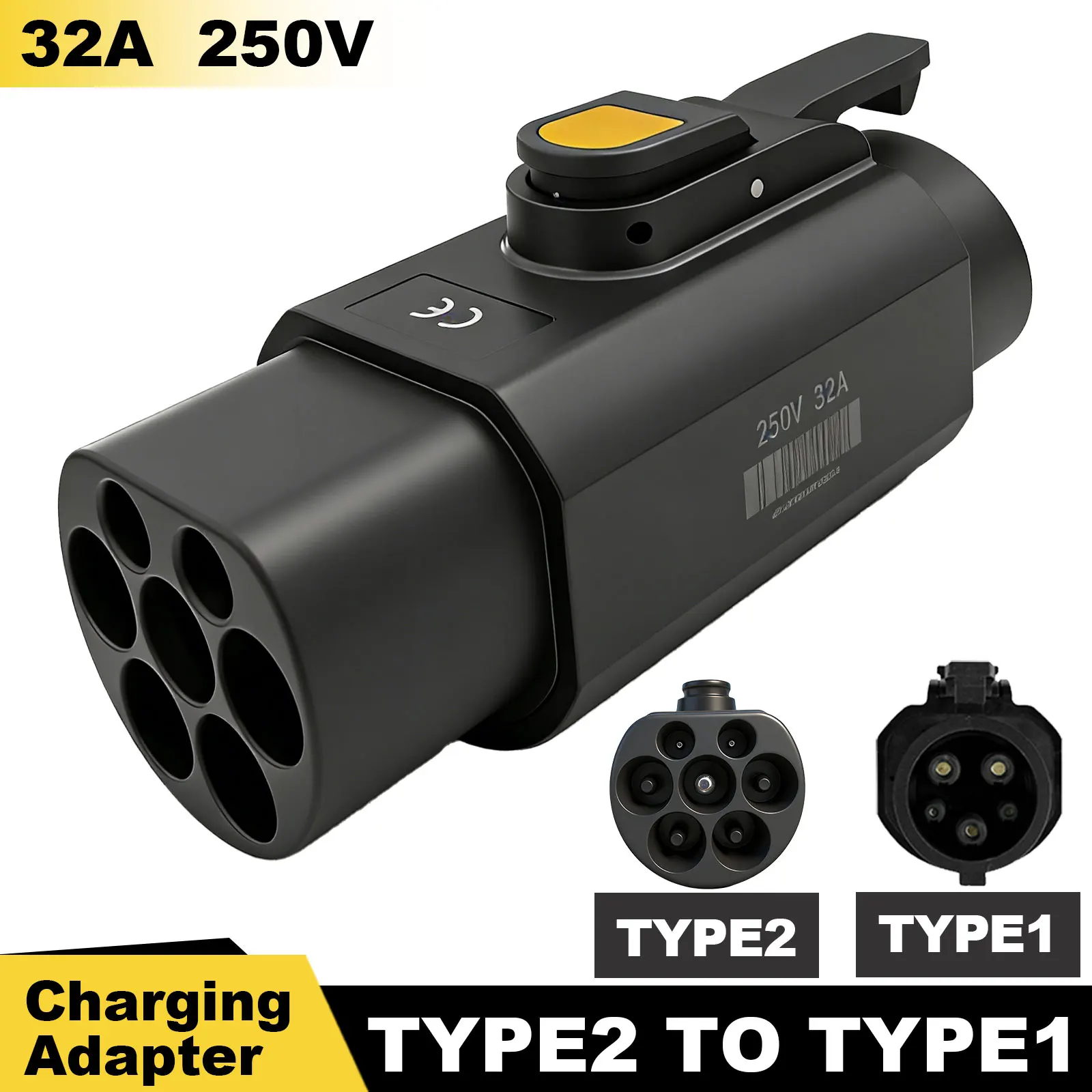 Adaptateur de chargeur EV de Type 2 à Type 1, IEC 62196 16A 32A SAE J1772, connecteur de charge pour véhicule électrique, convertisseur, prise EVSE