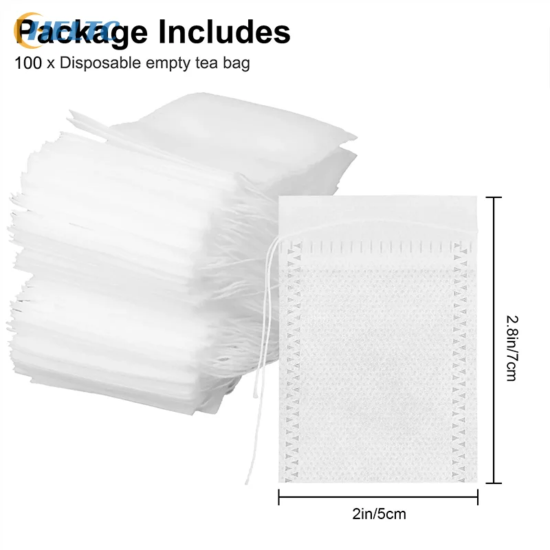 100 Sachets de Thé Blancs Non Tissés Jetables avec Cordon de Serrage, Filtres à Café et Épices, Infuseurs en Papier pour Cuisine et Art de la Table