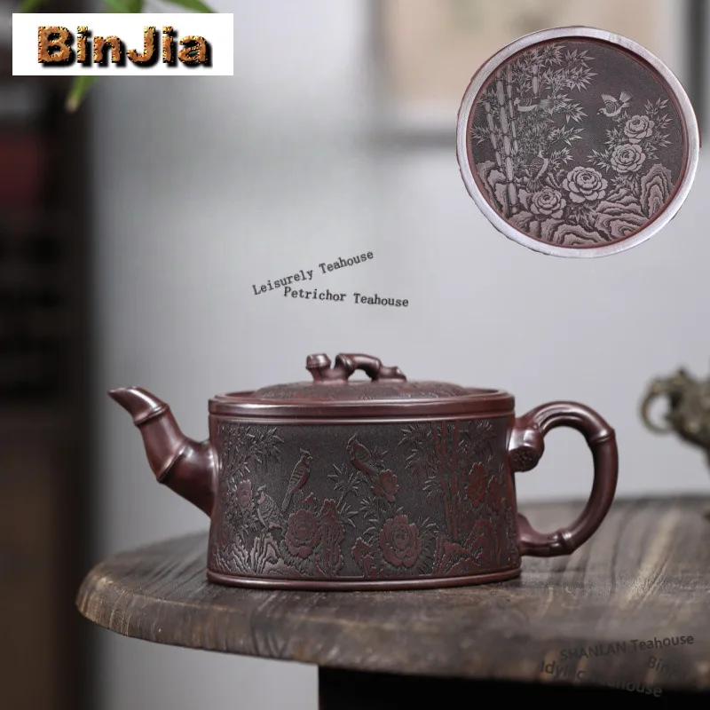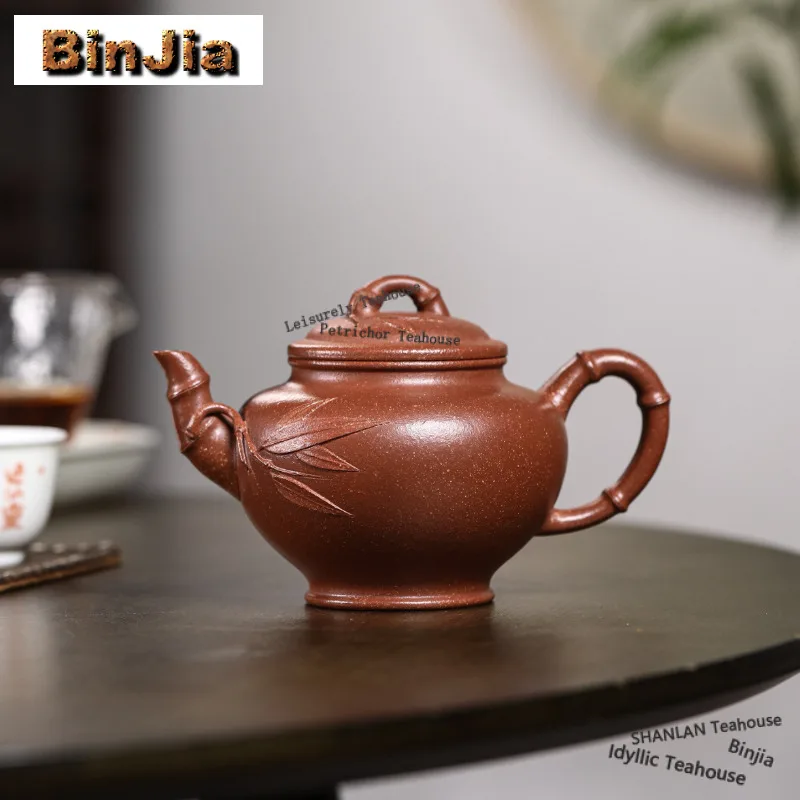Théières en argile violette de Yixing haut de gamme de 300 ml, faites à la main, avec des feuilles de bambou, théière de printemps, argile brute rouge, bouilloire en argile de descente, service à thé Zisha