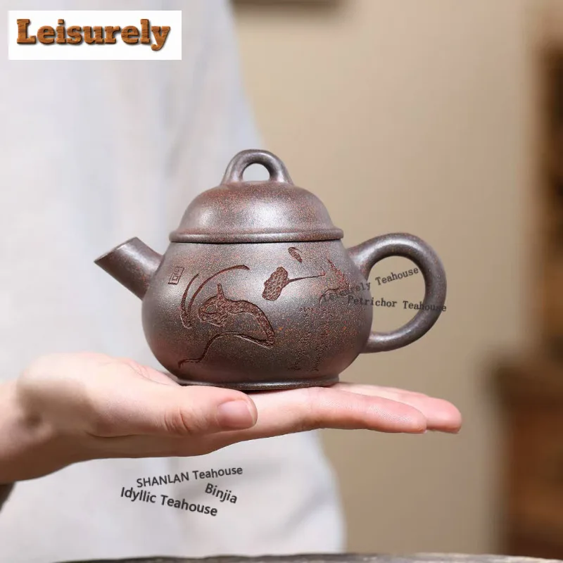 Théières en argile violette de Yixing de 170 ml, sculptées à la main, petite théière en forme de bateau géant, argile brute, bouilloire en terre Tianxing avec filtre, ensemble de thé Zisha, artisanat