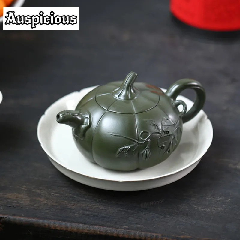 Théières en argile violette Yixing exquises de 350 ml, faites à la main, en forme de pot de citrouille, en argile brute, en sable de haricot, en argile verte, avec filtre, service à thé Zisha