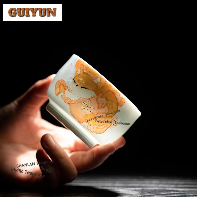 Arita Ware tasse à thé en renard à neuf queues peinte à la main bol à thé rétro tasse mignonne tasse d'odeur de dégustation de thé Jianzhan tasses principales service à thé