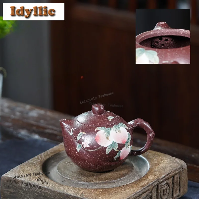 Théières Vintage Yixing en argile violette de 270ml, Pot de pêche de longévité fait à la main, bouilloire de boue de minerai brut avec infuseur, service à thé Zisha pour cadeau de thé