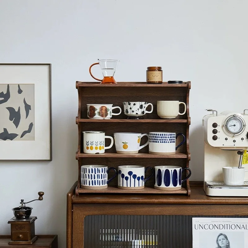 Étagère de rangement de tasses en noyer, étagère multifonctionnelle Simple à 3 niveaux, présentoir de service à thé, support d'organisation de rangement de cuisine à domicile