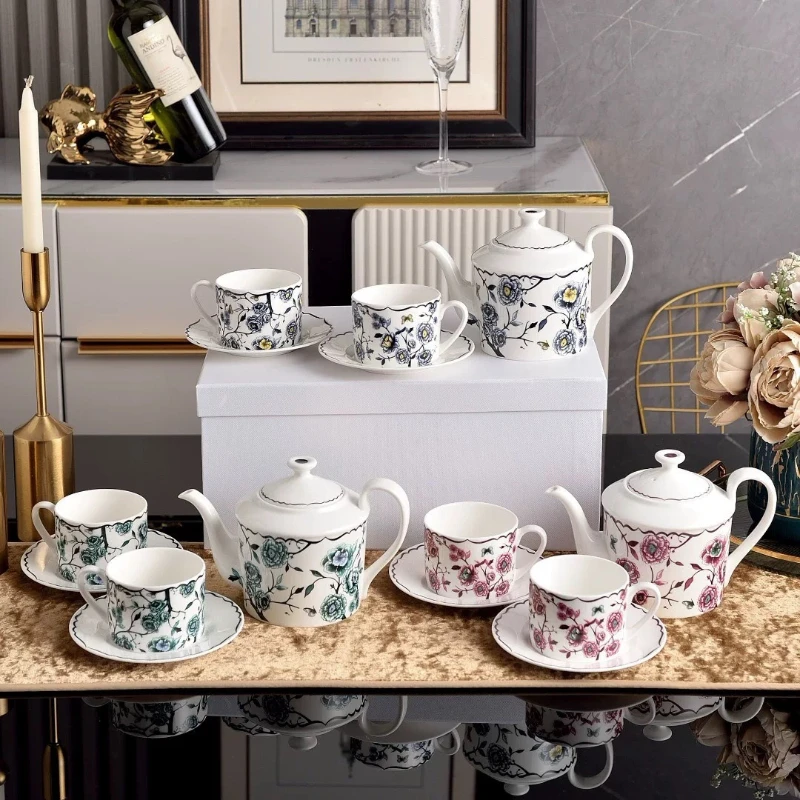 Service à café en porcelaine d'os de luxe léger européen, pot de lait au sucre, ensemble combiné tasse et soucoupe, service à thé de l'après-midi, coffret cadeau.