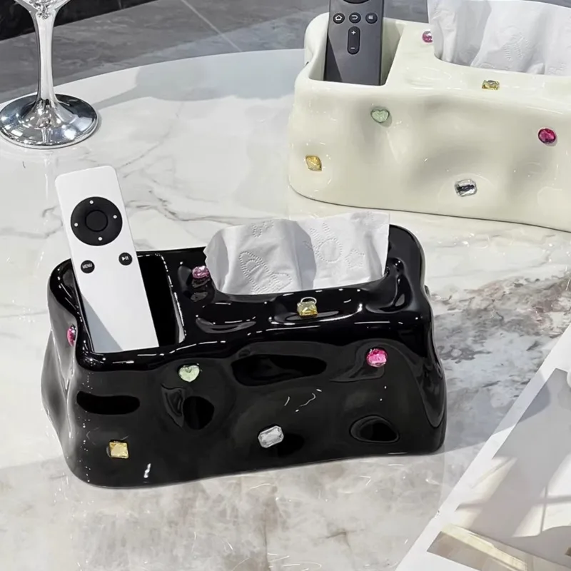 1 pièce Boîte à mouchoirs en céramique haut de gamme, style luxe léger, pour salon, rangement pour télécommandes et accessoires de table basse