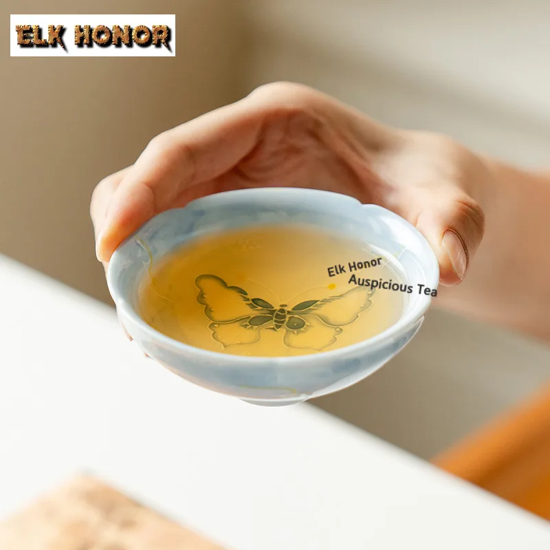 Tasse à thé papillon peinte à la main de 90ml, bol à thé Puer personnel, pichet d'eau, cône de dégustation de thé, tasse de méditation, tasses maîtres Chazhan, service à thé