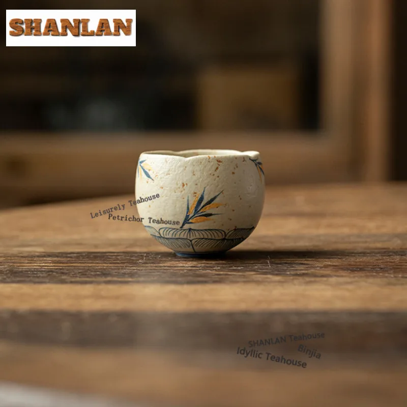 Tasse à thé en bambou Lotus peinte à la main de 70ml, bol à thé rétro, ensemble de tasses, tasse à odeur de dégustation du thé, tasses principales Jianzhan, ornements de service à thé
