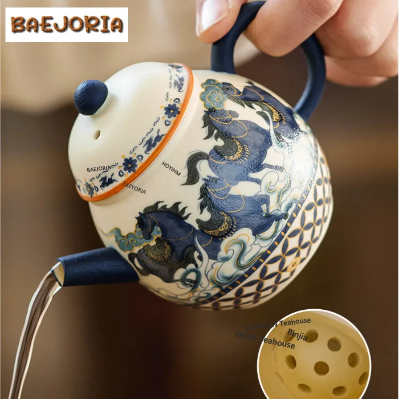 Théière traditionnelle 135 ml avec motif Nuages Auspicieux et Huit Chevaux, infuseur à thé, bouilloire avec trou pour boule, collection de vaisselle à thé