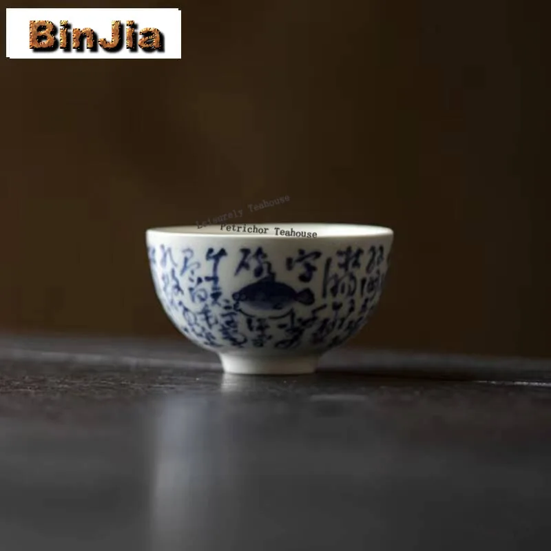 Tasse à thé en porcelaine bleue et blanche, faite à la main, pavillon de poisson Dragon Phoenix, Kungfu chinois, cérémonie, service à thé, tasses principales