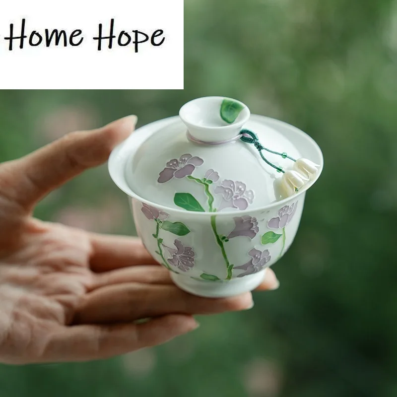 Cloche dessinée à la main orchidée Gaiwan en porcelaine blanche, bol de couverture fait à la main, élégant thé Tureen Vintage, fabrication de thé, cadeau artisanal, 100ml
