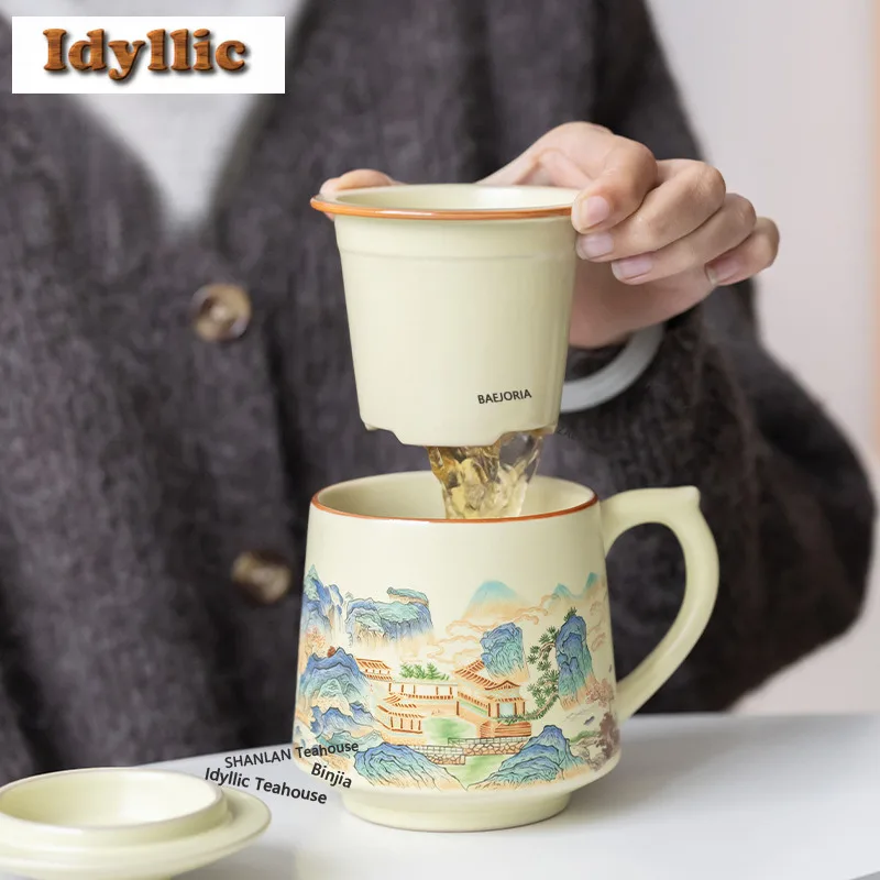 Tasse à thé esthétique jaune de 450 ml en céramique Ru avec infuseur, séparateur de thé, pour le bureau, tasse à eau, accessoires de thé