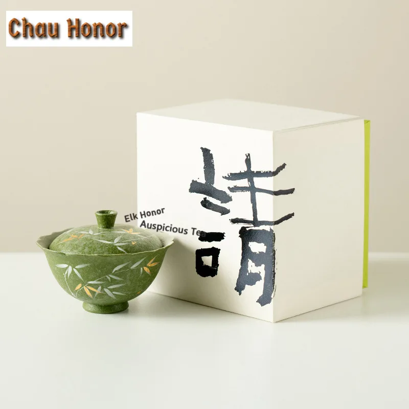 Gaiwan – bol à thé traditionnel Anti-brûlure, feuille de bambou peinte à la main de 70ml, avec couvercle, Kit de fabrication de thé, bol de couverture, service à thé, cadeau