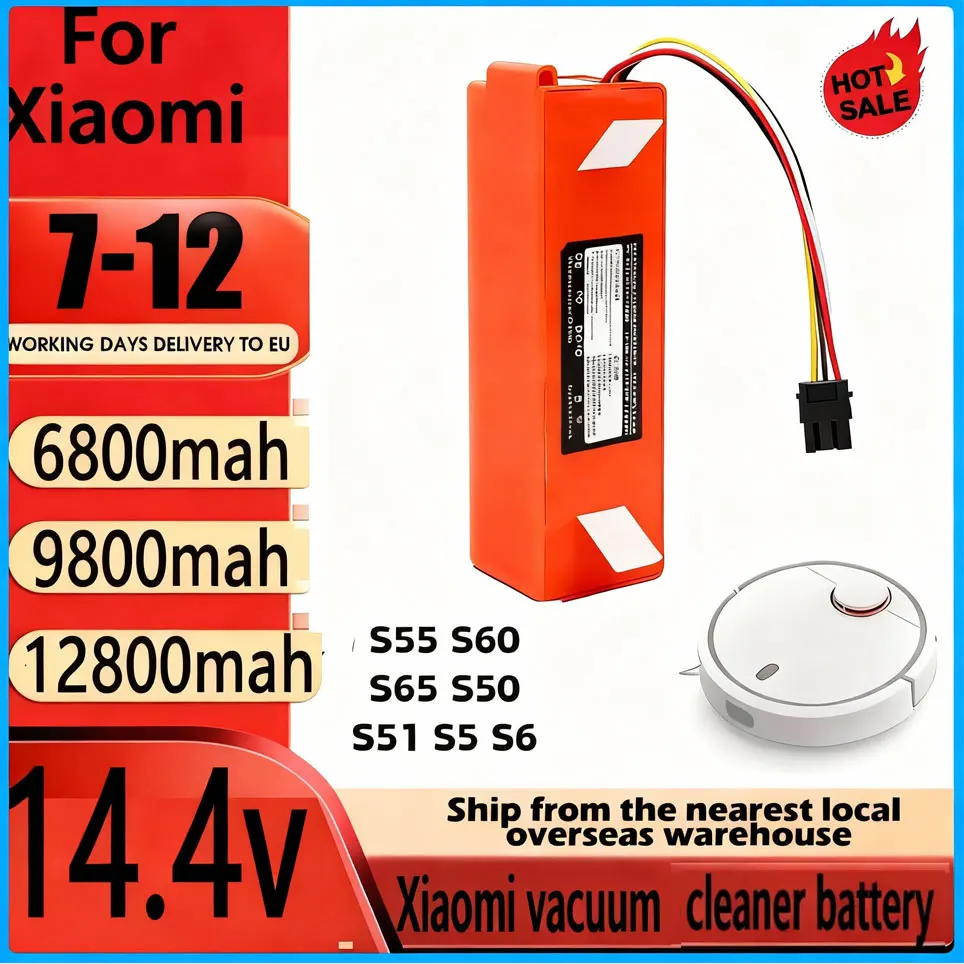 Batterie de remplacement 14.4V pour aspirateur robot Xiaomi Roborock, S55, S60, S65, S50, S51, S5 MAX S6, pièces, 5200mAh-12800mAh