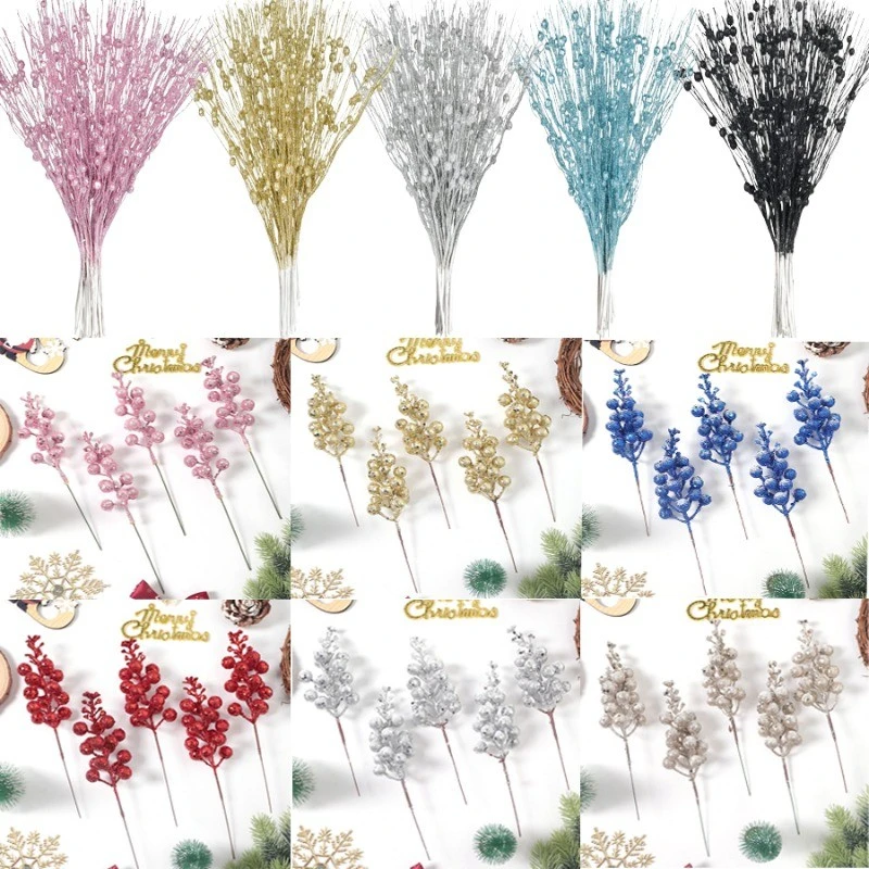 5 pièces rose artificiel paillettes baies tige ornements pour arbre de noël décoration ornements nouvel an décor à la maison cadeaux guirlande