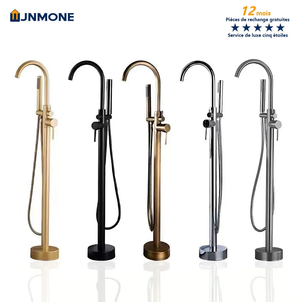 Ensemble de robinets de baignoire autoportants en laiton modernes de luxe, double poignée 360 ° Mélangeur de salle de bain rotatif, robinet d'eau de douche à 2 fonctions
