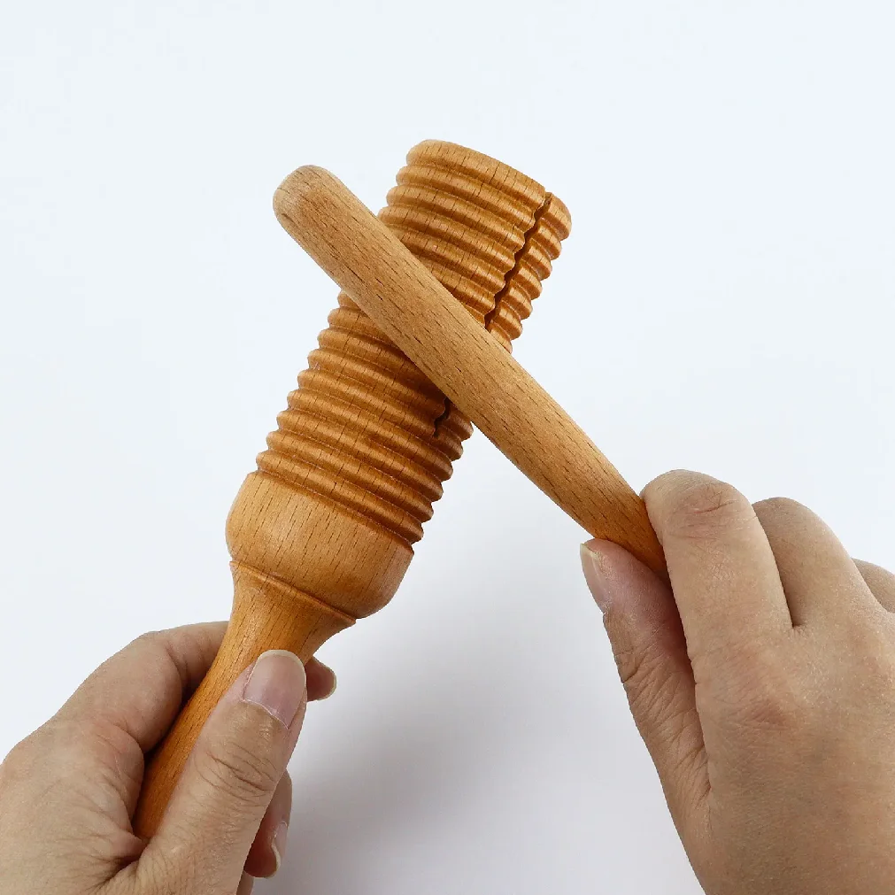 Lot de 2 cuillères musicales en bois pour enfants, instrument de percussion pour l'éducation précoce et le développement de la coordination œil-main, en bois naturel