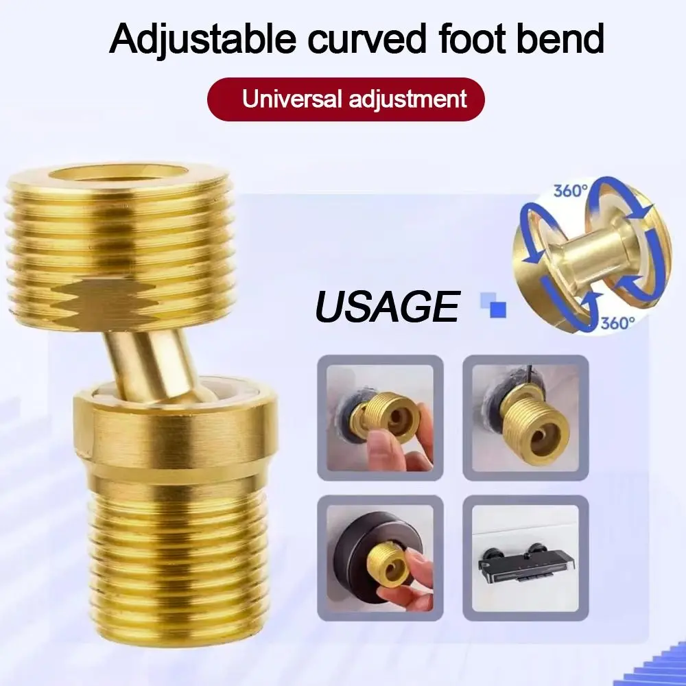 Pied incurvé coudé en cuivre 360 ° Adaptateur de robinet de douche à réglage d'angle rotatif, coin de vis excentrique allongé mural