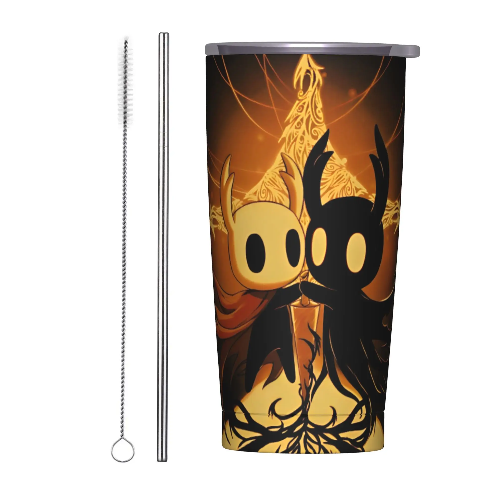 Gobelet isotherme Hollow Knight avec couvercle et pailles, en acier inoxydable, pour café, bureau, maison, voiture, 20 oz