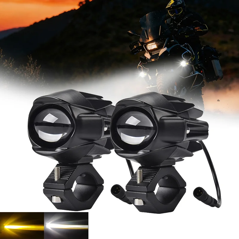 Phare de moto universel, clignotant double couleur, ensemble de phares antibrouillard auxiliaires LED, lampe de conduite pour Honda Yamaha Kawasaki ATV