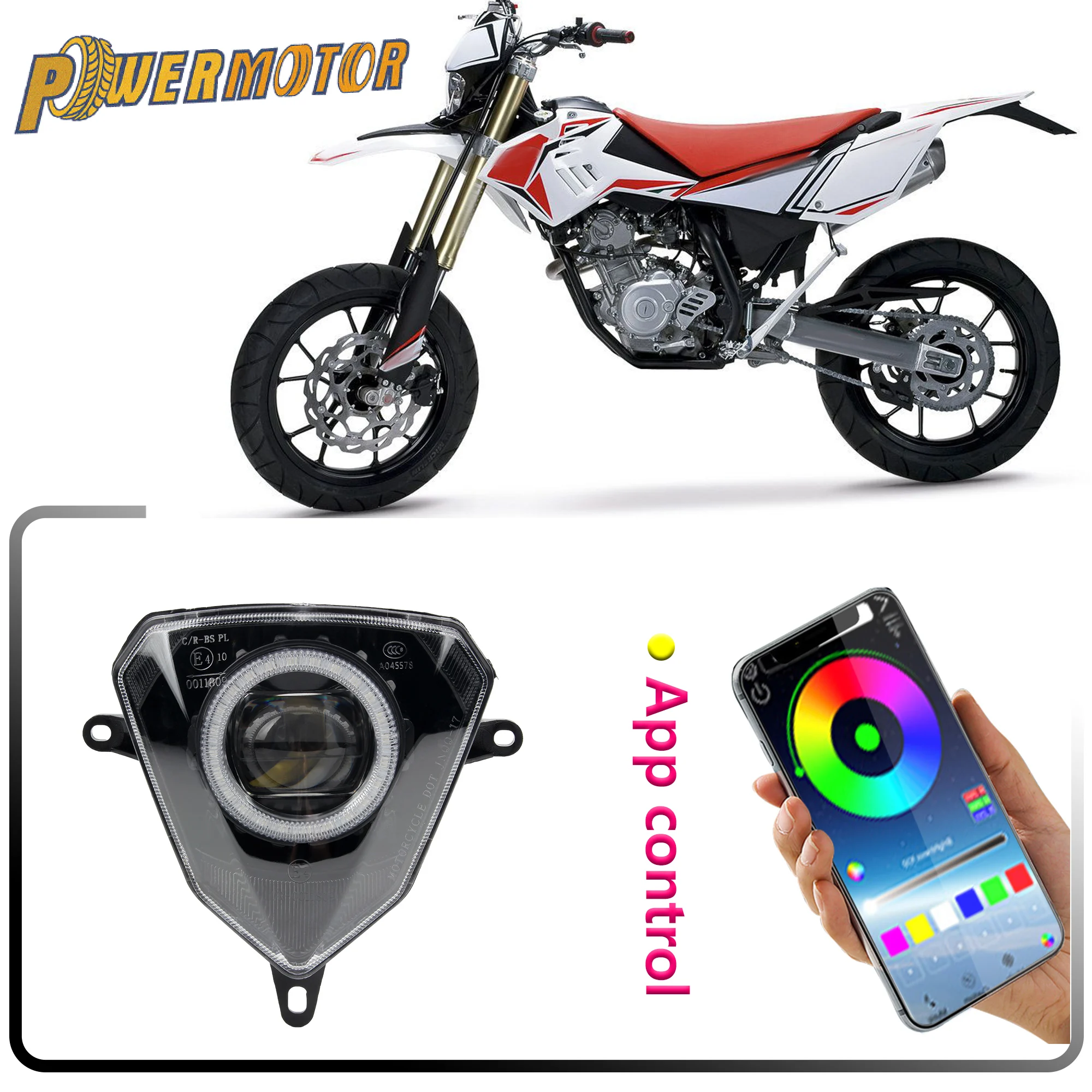Phare LED pour motos approuvé e-mark, contrôle par application, phare RGB pour Beta RR 125-480 2010-2023 125-50 LC Xtrainer 250/300