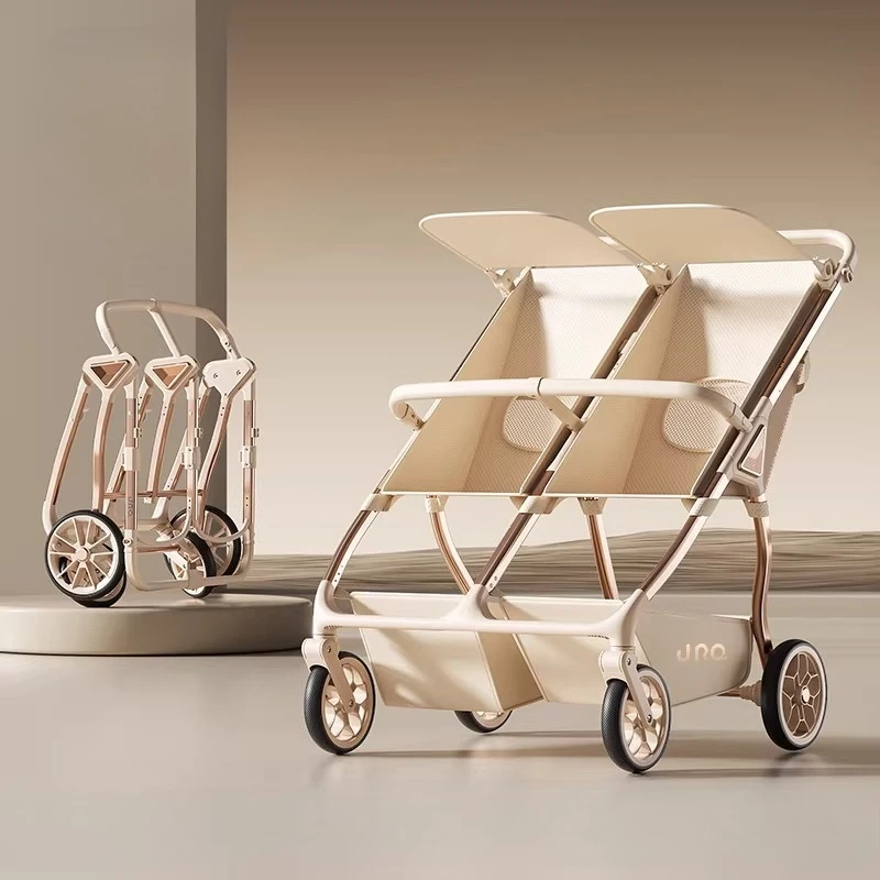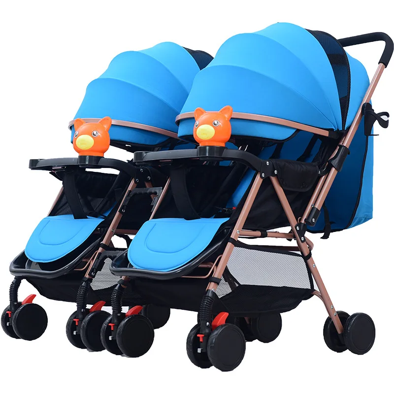 Nouvelles poussettes jumelées haute visibilité, pouvant être utilisées en position assise ou allongée, poussettes jumelées légères et pliables, poussettes doubles légères