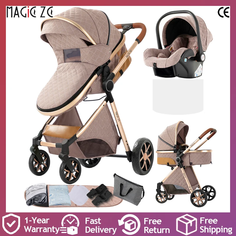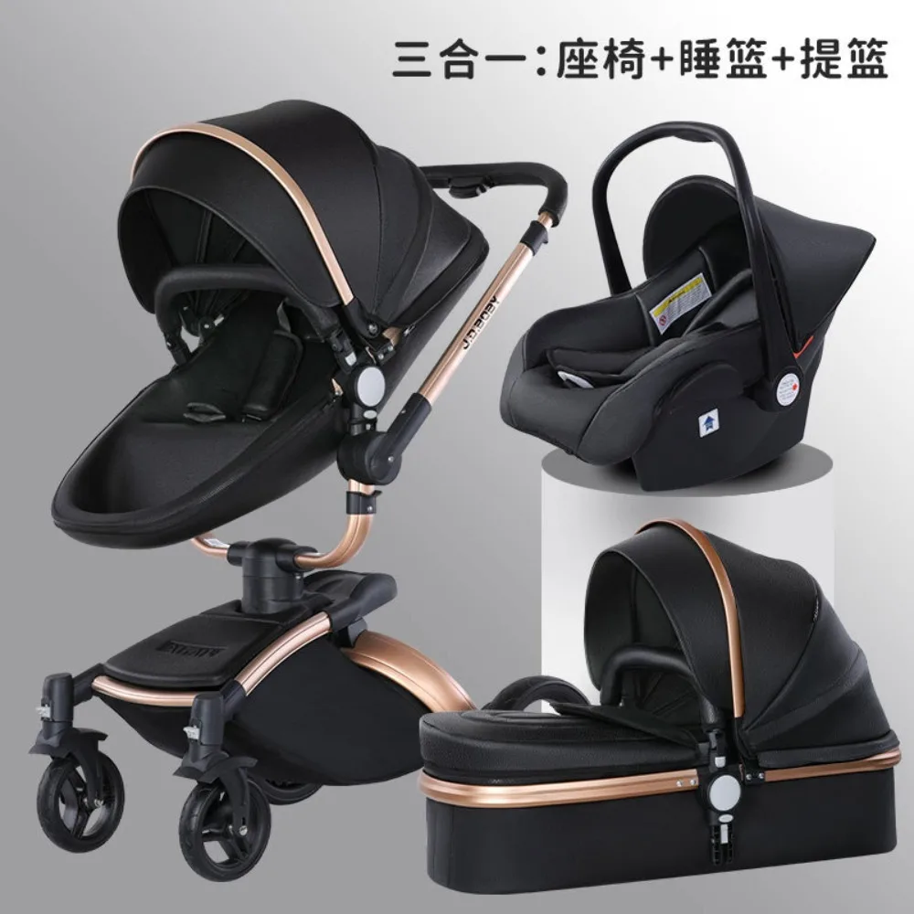 Poussette de luxe 3 en 1 pour bébé, avec siège auto et berceau, landau de paysage haut, légère, facile à plier, voyage