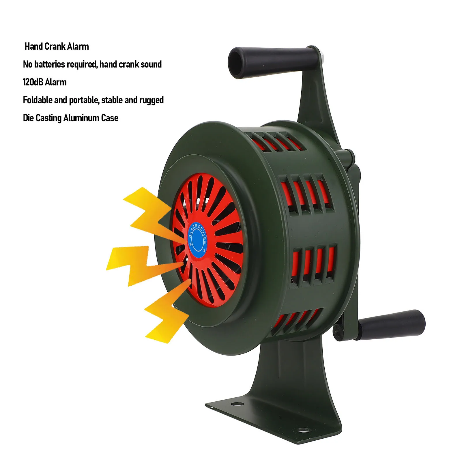 Alarme métallique manuelle 120db, sirène à manivelle, klaxon, Raid aérien, sirène d'avertissement de sécurité d'urgence pour la prévention des inondations incendie et des catastrophes