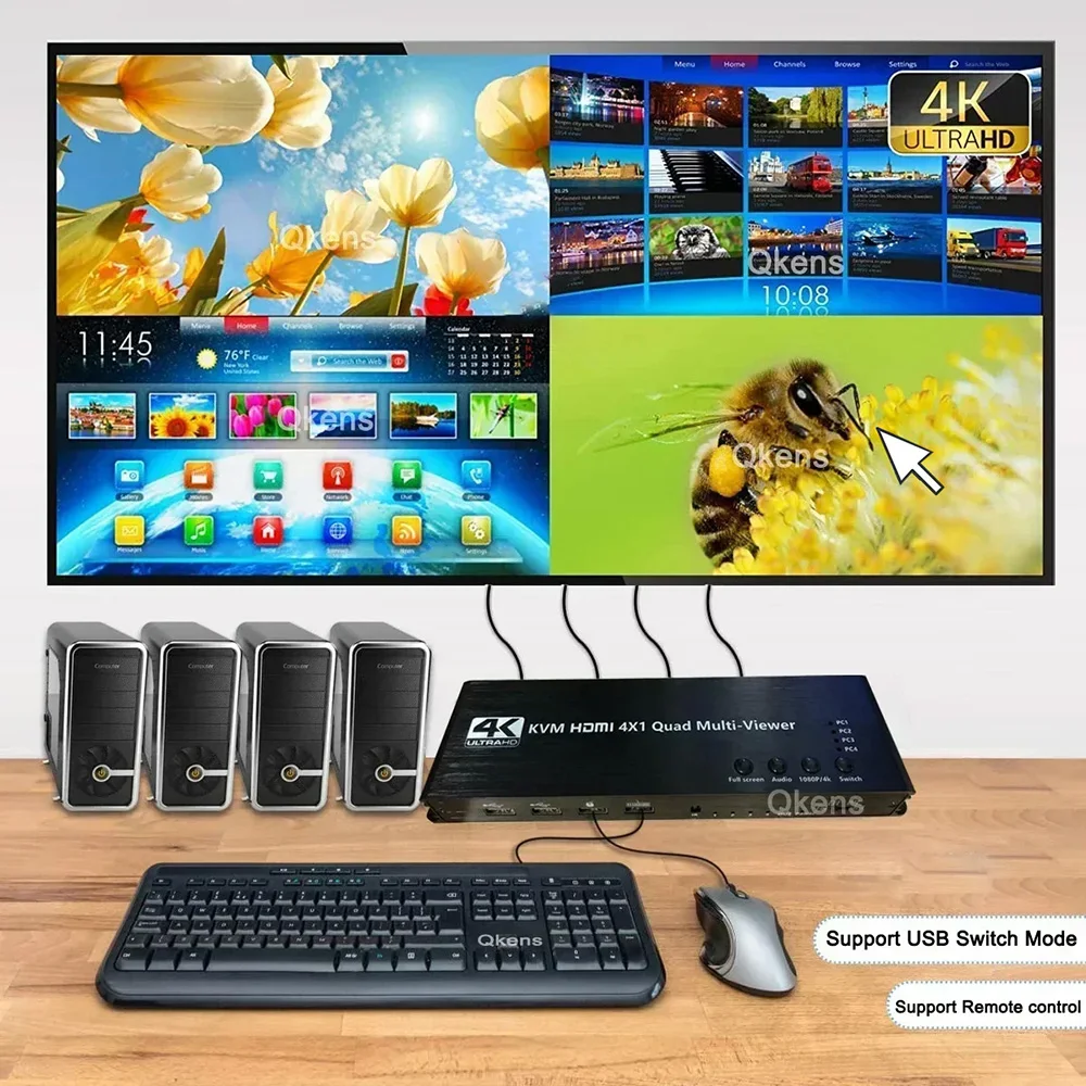 Multi-Viewer HDMI 4K, 1080p, 4x1, KVM, Façades HDMI, Multicook4 IN 1 OUT Seamless Switch, Support 4 Laptop PC, Partage Souris et Clavier