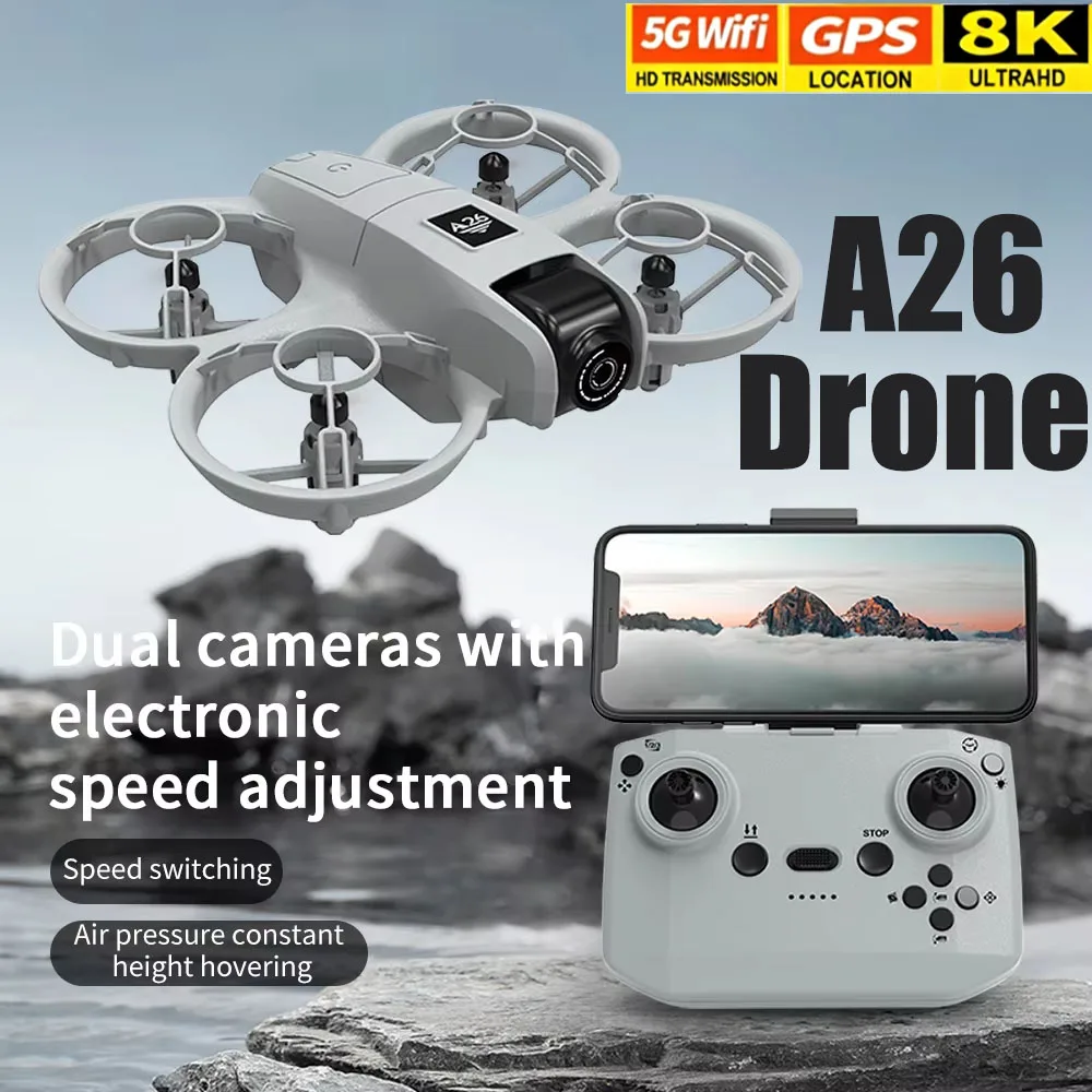 Drone à flux optique A26 avec double caméra 8K, quadrirotor pliable, grand Angle, évitement d'obstacles, moteur sans balais, cadeau d'anniversaire pour enfants
